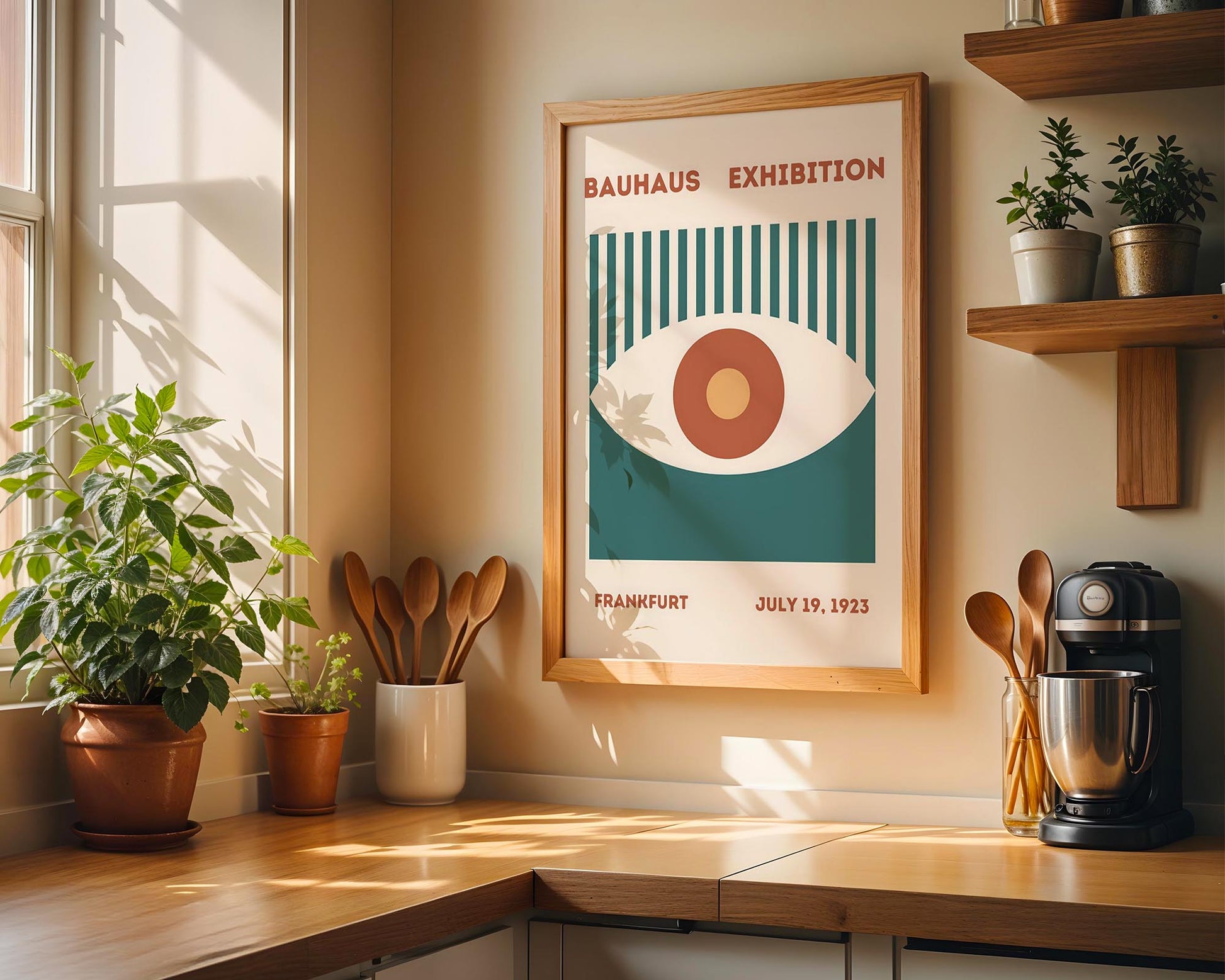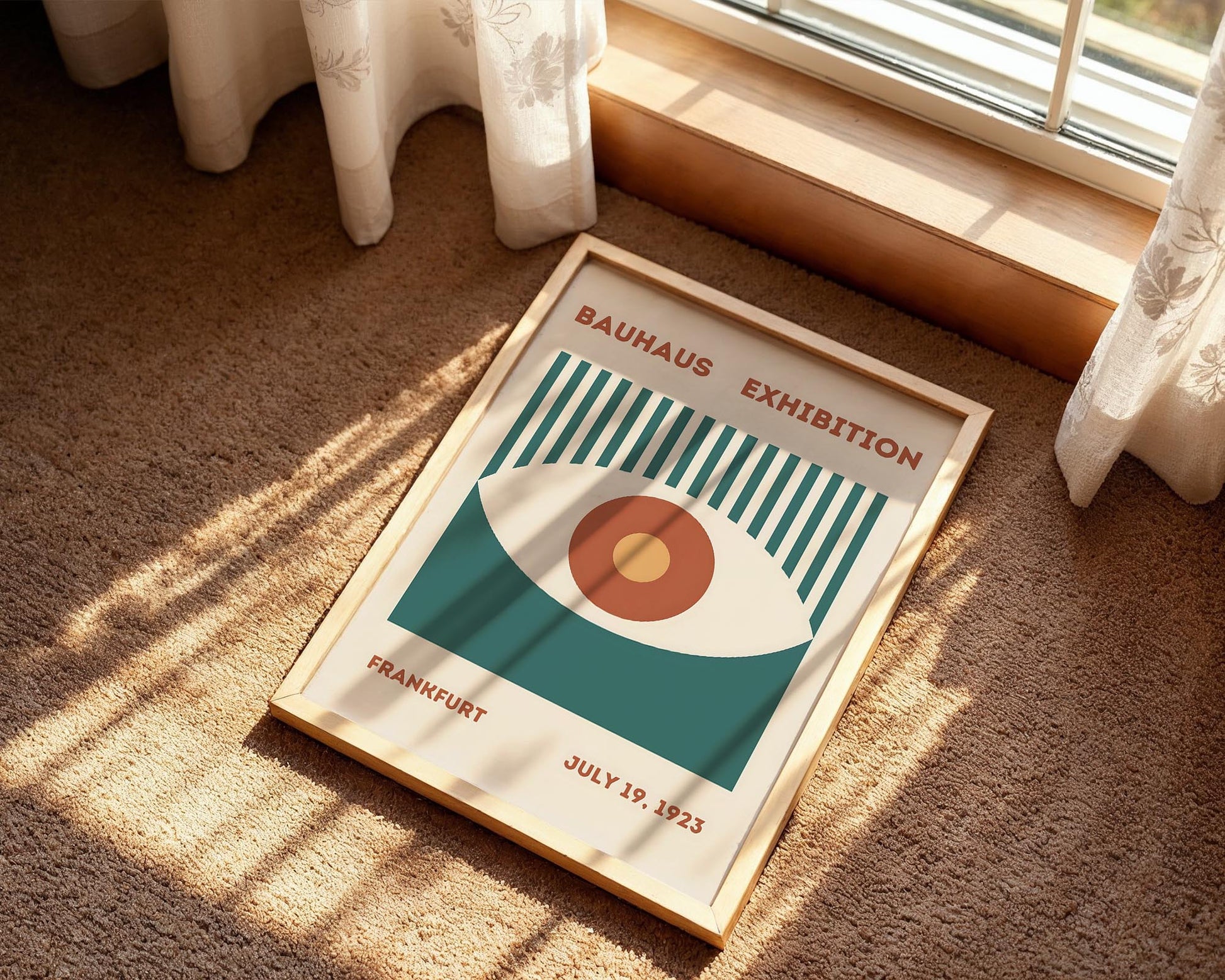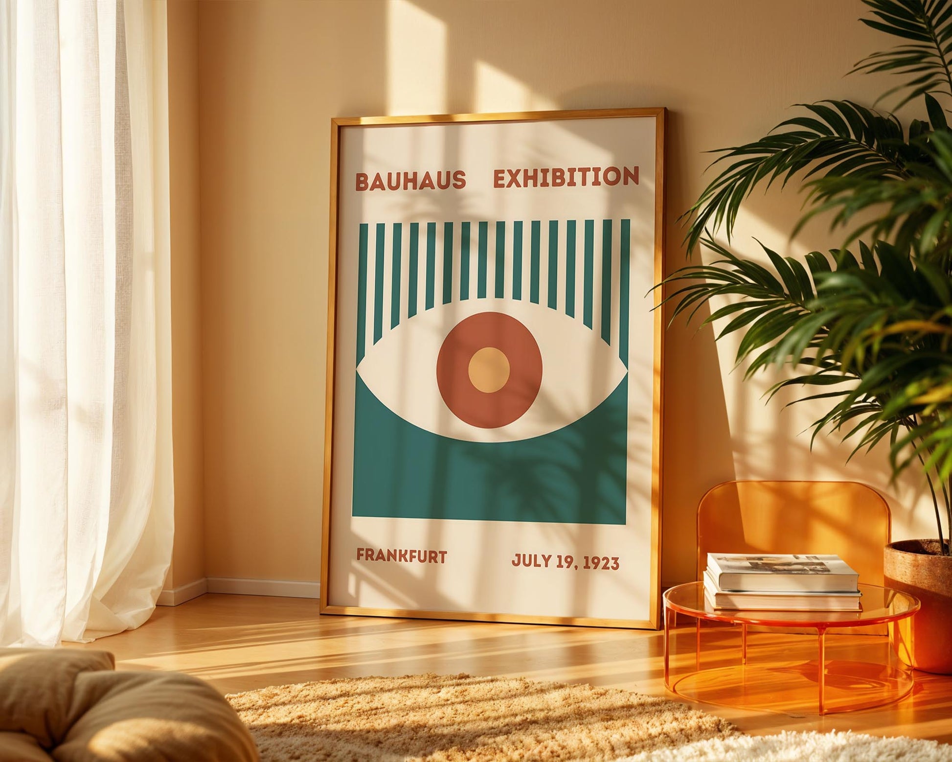 Bauhaus Eye Exhibition Poster – Geometric Mid Century Wall Art Print